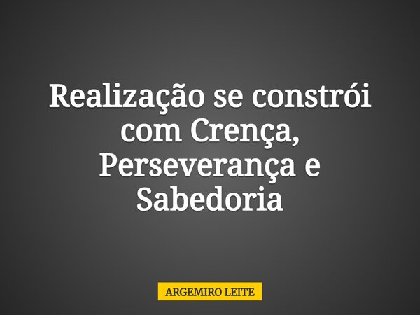 Realização se constrói com Crença, Perseverança e Sabedoria