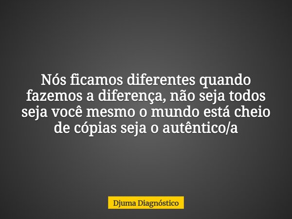 Nós ficamos diferentes quando fazemos a diferença, não seja todos seja você mesmo o mundo está cheio de cópias seja o autêntico/a