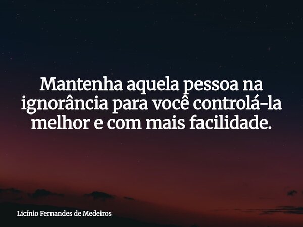 Mantenha aquela pessoa na ignorância para você controlá-la melhor e com mais facilidade.