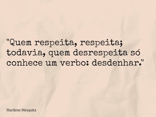 "Quem respeita, respeita; todavia, quem desrespeita só conhece um verbo: desdenhar."