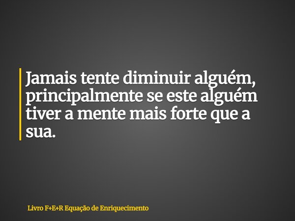 Jamais tente diminuir alguém, principalmente se este alguém tiver a mente mais forte que a sua.