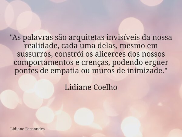 "As palavras são arquitetas invisíveis da nossa realidade, cada uma delas, mesmo em sussurros, constrói os alicerces dos nossos comportamentos e crenças, podendo erguer pontes de empatia ou muros de inimizade."