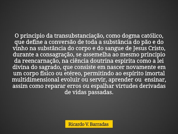 O principio da transubstanciação, como... Ricardo V. Barradas
