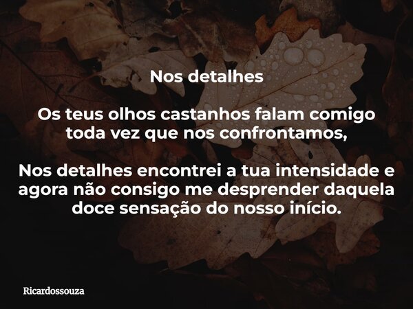 Nos detalhes Os teus olhos castanhos falam comigo toda vez que nos confrontamos, Nos detalhes encontrei a tua intensidade e agora não consigo me desprender daquela doce sensação do nosso início.