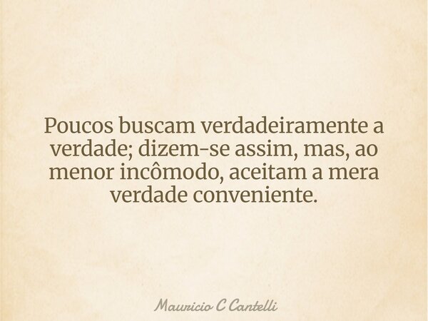 Poucos buscam verdadeiramente a verdade; dizem-se assim, mas, ao menor incômodo, aceitam a mera verdade conveniente.