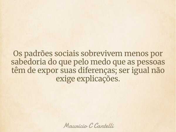 Os padrões sociais sobrevivem menos por sabedoria do que pelo medo que as pessoas têm de expor suas diferenças; ser igual não exige explicações.
