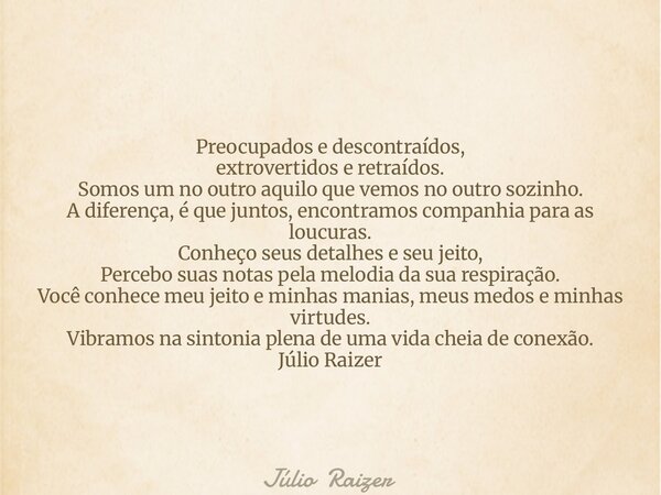 Você conhece meu jeito e minhas manias, meus medos e minhas virtudes.