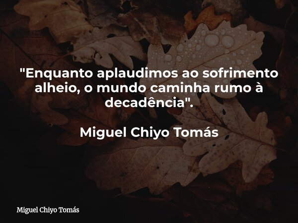 "Enquanto aplaudimos ao sofrimento alheio, o mundo caminha rumo à decadência". Miguel Chiyo Tomás