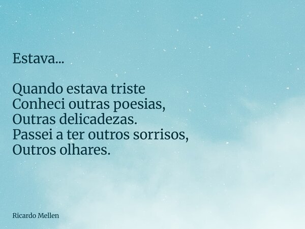 Estava... Quando estava triste Conheci outras poesias, Outras delicadezas. Passei a ter outros sorrisos, Outros olhares.