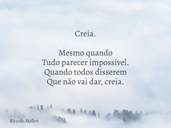 Creia. Mesmo quando Tudo parecer impossível. Quando todos disserem Que não vai dar, creia.