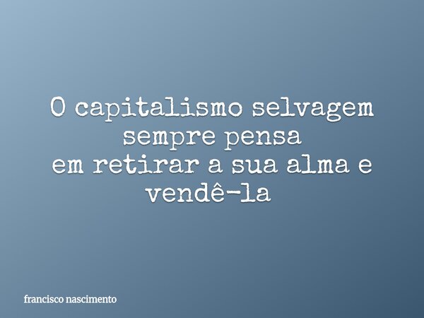 O capitalismo selvagem sempre pensa em retirar a sua alma e vendê-la