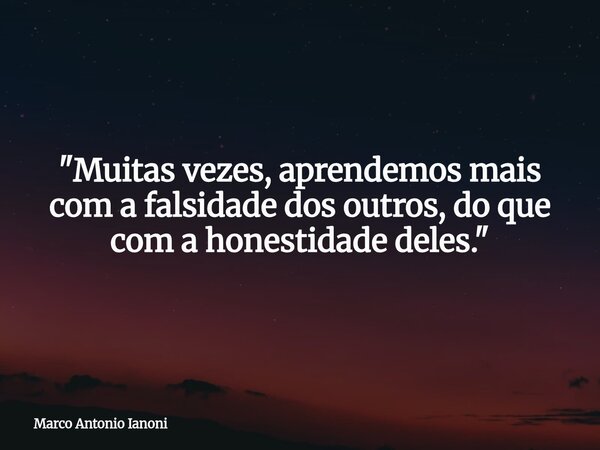 "Muitas vezes, aprendemos mais com a falsidade dos outros, do que com a honestidade deles."