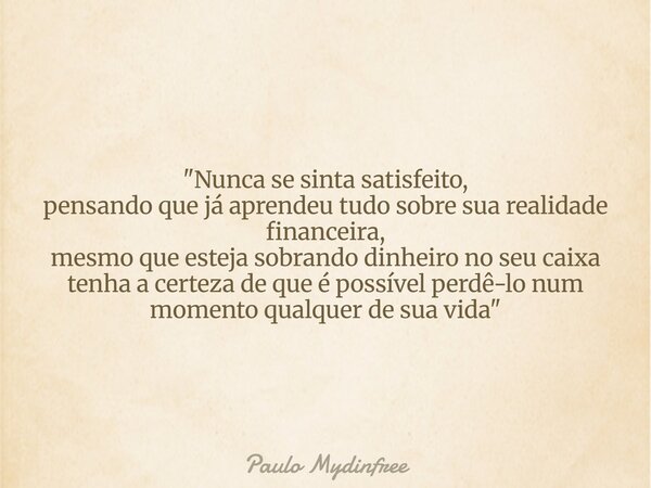 "Nunca se sinta satisfeito,... Paulo Mydinfree