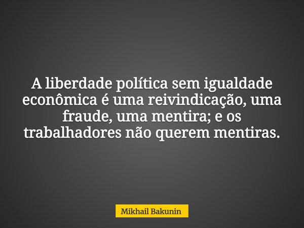 A liberdade política sem igualdade econômica é uma reivindicação, uma fraude, uma mentira; e os trabalhadores não querem mentiras.... Frase de Mikhail Bakunin.