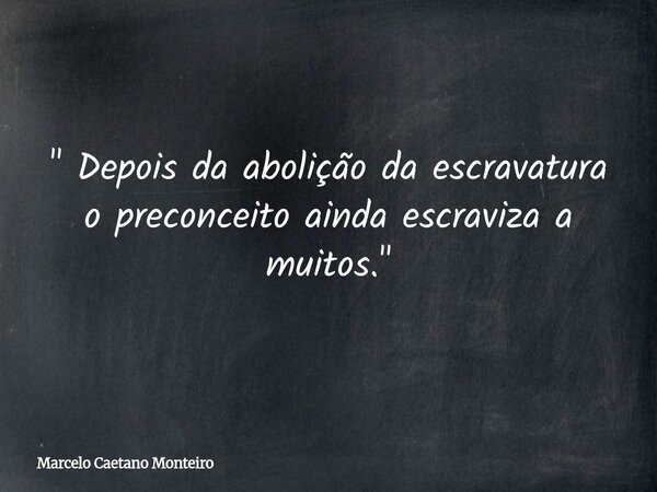 " Depois da abolição da escravatura o preconceito ainda escraviza a muitos. "