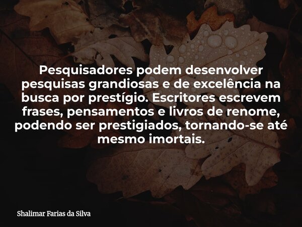Pesquisadores podem desenvolver... Shalimar Farias da Silva