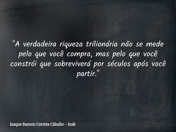 "A verdadeira riqueza trilionária não se mede pelo que você compra, mas pelo que você constrói que sobreviverá por séculos após você partir."