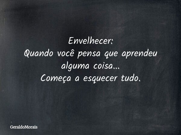 Envelhecer: Quando você pensa que aprendeu alguma coisa... Começa a esquecer tudo.