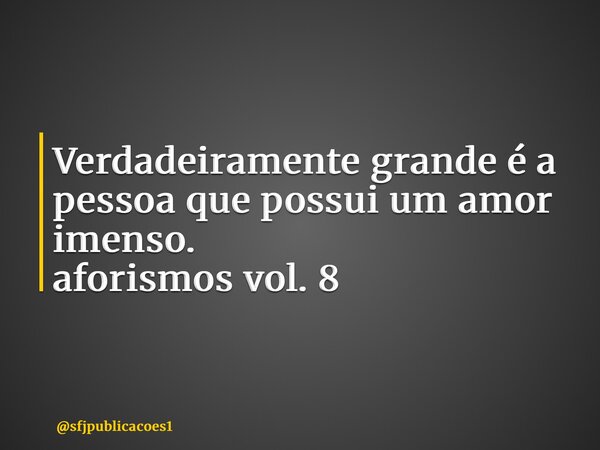 Verdadeiramente grande é a pessoa que possui um amor imenso. aforismos vol. 8