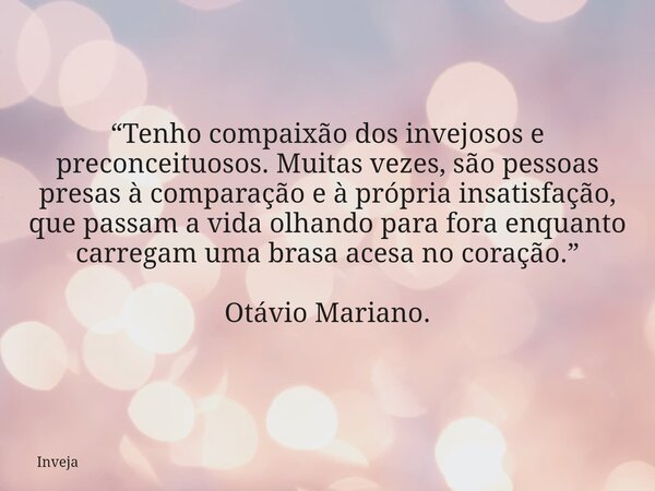 “Tenho compaixão dos invejosos e preconceituosos. Muitas vezes, são pessoas presas à comparação e à própria insatisfação, que passam a vida olhando para fora enquanto carregam uma brasa acesa no coração.”