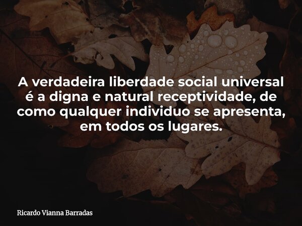 A verdadeira liberdade social universal é a digna e natural receptividade, de como qualquer individuo se apresenta, em todos os lugares.