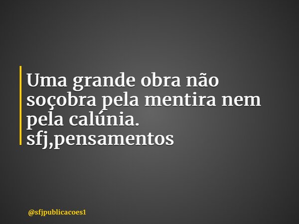 Uma grande obra não soçobra pela mentira nem pela calúnia. sfj,pensamentos