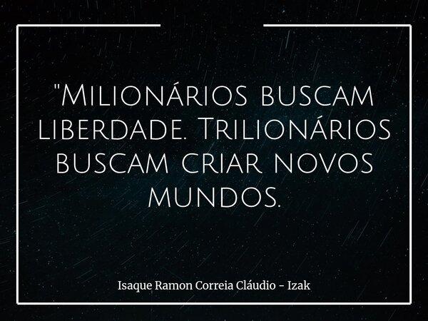 "Milionários buscam liberdade. Trilionários buscam criar novos mundos.