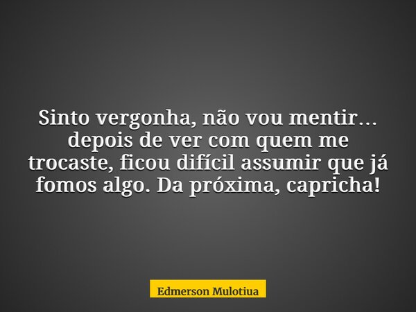 Sinto vergonha, não vou mentir… depois de ver com quem me trocaste, ficou difícil assumir que já fomos algo. Da próxima, capricha!