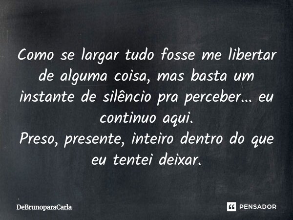 Como se largar tudo fosse me libertar de alguma coisa, mas basta um instante de silêncio pra perceber... eu continuo aqui. Preso, presente, inteiro dentro do que eu tentei deixar.