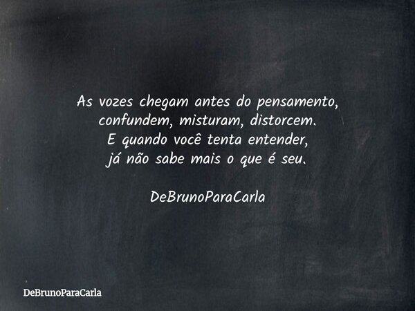 As vozes chegam antes do pensamento, confundem, misturam, distorcem. E quando você tenta entender, já não sabe mais o que é seu. DeBrunoParaCarla