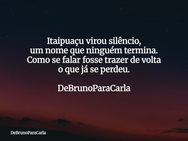 Itaipuaçu virou silêncio, um nome que ninguém termina. Como se falar fosse trazer de volta o que já se perdeu. DeBrunoParaCarla