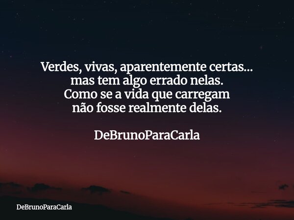 Verdes, vivas, aparentemente certas… mas tem algo errado nelas. Como se a vida que carregam não fosse realmente delas. DeBrunoParaCarla