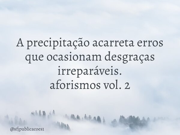 A precipitação acarreta erros que ocasionam desgraças irreparáveis. aforismos vol. 2
