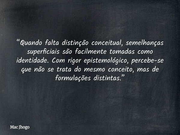 “Quando falta distinção conceitual, semelhanças superficiais são facilmente tomadas como identidade. Com rigor epistemológico, percebe-se que não se trata do mesmo conceito, mas de formulações distintas.”