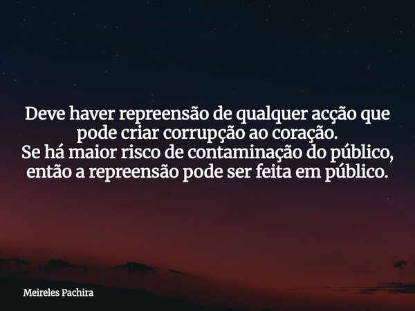 Deve haver repreensão de qualquer acção que pode criar corrupção ao coração. Se há maior risco de contaminação do público, então a repreensão pode ser feita em público.