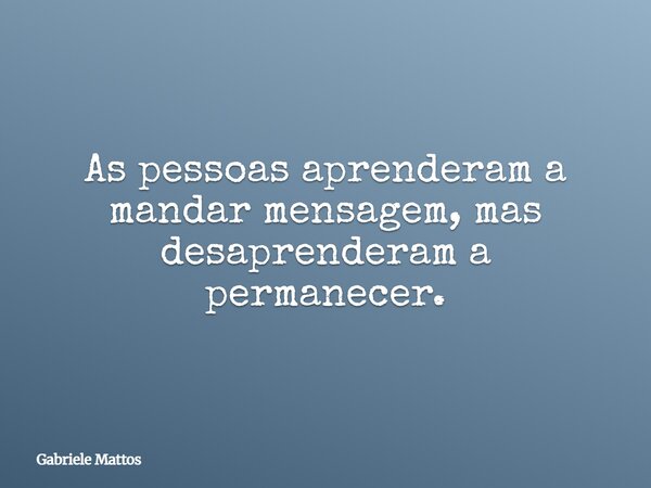 As pessoas aprenderam a mandar mensagem, mas desaprenderam a permanecer.