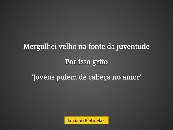Mergulhei velho na fonte da juventude Por isso grito "Jovens pulem de cabeça no amor"