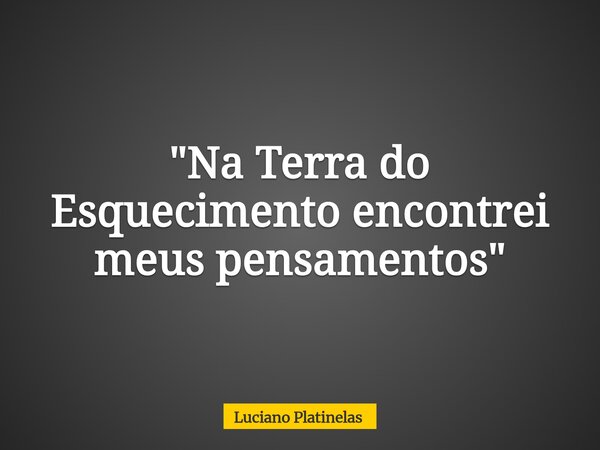 "Na Terra do Esquecimento encontrei meus pensamentos"