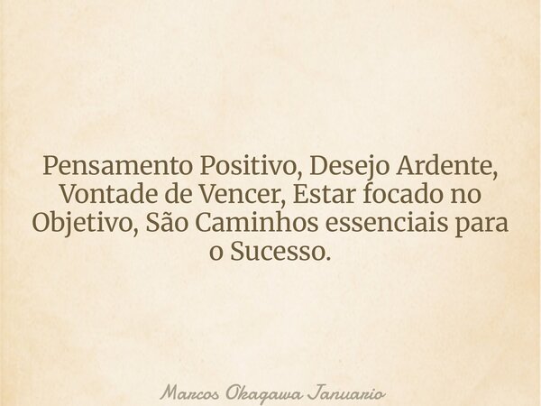 Pensamento Positivo, Desejo Ardente, Vontade de Vencer, Estar focado no Objetivo, São Caminhos essenciais para o Sucesso.