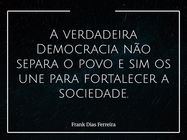 A verdadeira Democracia não separa o povo e sim os une para fortalecer a sociedade.