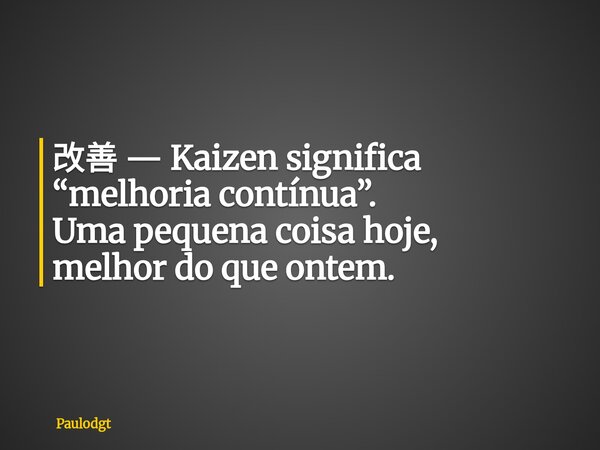 改善 — Kaizen significa “melhoria contínua”. Uma pequena coisa hoje, melhor do que ontem.