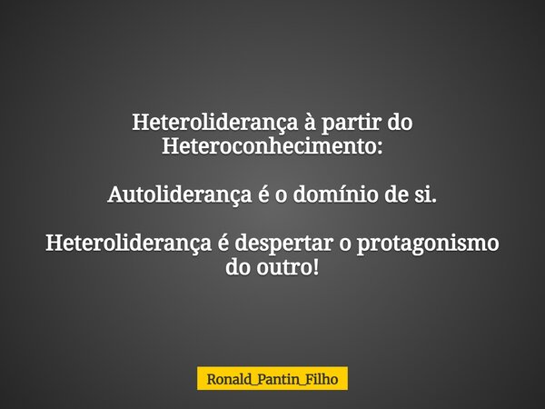 Heteroliderança à partir do Heteroconhecimento: Autoliderança é o domínio de si. Heteroliderança é despertar o protagonismo do outro!