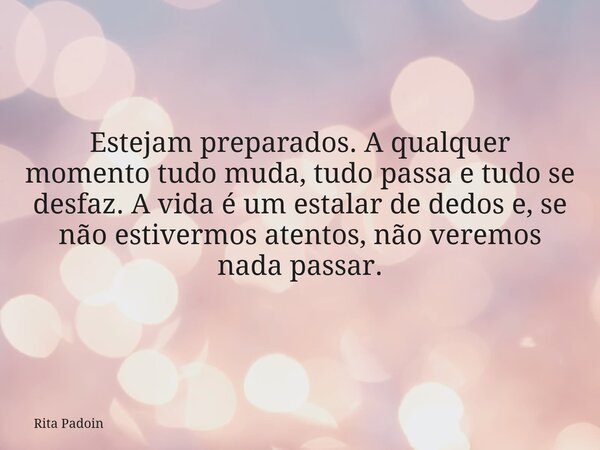 Estejam preparados. A qualquer momento tudo muda, tudo passa e tudo se desfaz. A vida é um estalar de dedos e, se não estivermos atentos, não veremos nada passar.
