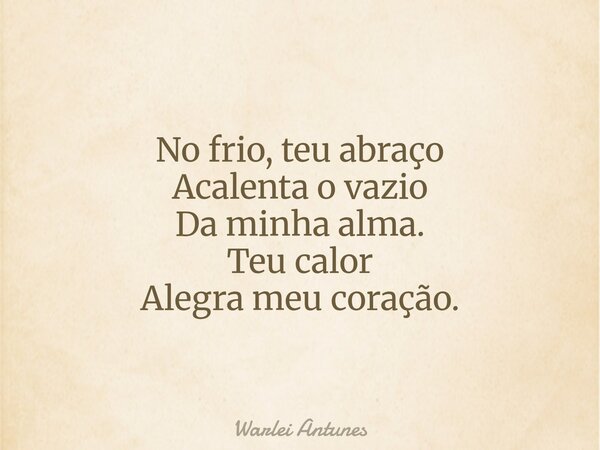 No frio, teu abraço Acalenta o vazio Da minha alma. Teu calor Alegra meu coração.