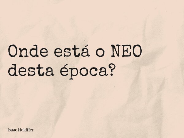 Onde está o NEO desta época?... Frase de Isaac Holdffer.