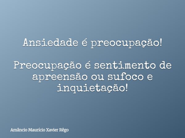 Ansiedade é preocupação! Preocupação é sentimento de apreensão ou sufoco e inquietação!