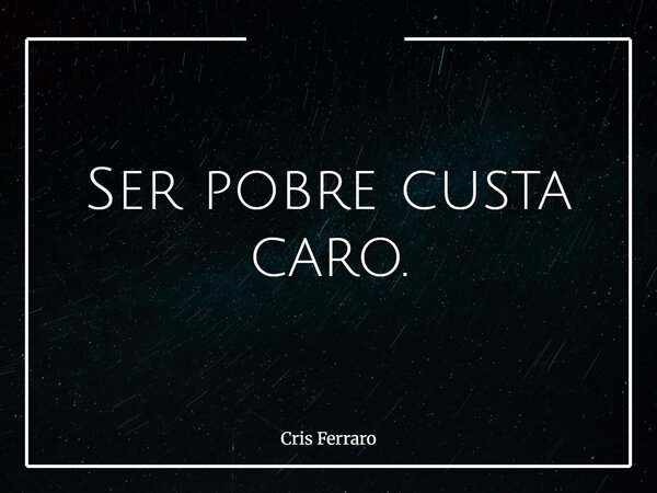 Ser pobre custa caro.... Frase de Cris Ferraro.