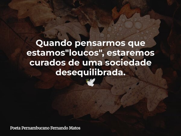 Quando pensarmos que estamos "loucos", estaremos curados de uma sociedade desequilibrada. đ