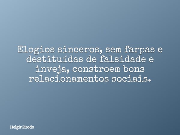Elogios sinceros, sem farpas e destituídas de falsidade e inveja, constroem bons relacionamentos sociais.