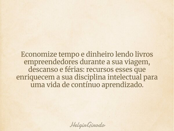 Economize tempo e dinheiro lendo livros empreendedores durante a sua viagem, descanso e férias: recursos esses que enriquecem a sua disciplina intelectual para uma vida de contínuo aprendizado.